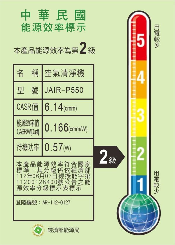 JAIR-P550空氣清淨機規格:顆粒物CADR甲醛CADR適用面積濾網等級風速調整定時等離子濾網更換提醒兒童安全鎖光感應自動轉舒眠靜音舒眠兒童安全鎖移動氵袞輪噪音功率電壓淨重550(M3/h)271(M3/h)20-24(坪)H13高效級+3D靜電複合式舒眠、低、中、1-7小時有3000小時有有有有有33-55(dBA)48(W)110~220V通用9.5(kg)、自動